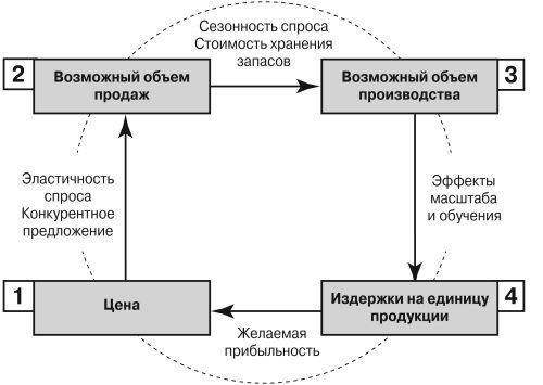 Именно такой подход позволяет избежать серьезного порока затратного ценообразования: установления слишком высоких цен на «слабых» рынках (т. е. с ухудшающейся конъюнктурой) или слишком низких цен на «сильных» рынках (т. е. с растущим спросом).