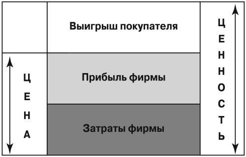 К сожалению, не все так просто, как может показаться. Задача ценностного подхода к ценообразованию состоит вовсе не в том, чтобы клиенты фирмы были довольны. Такую благосклонность в конце концов нетрудно приобрести и за счет больших скидок с цен. Но нет большей ошибки, чем полагать, будто достигнутый таким образом высокий объем продаж является плодом удачной маркетинговой стратегии. На самом деле ценностное ценообразование призвано обеспечить прежде всего получение большей прибыли за счет достижения выгодного для фирмы соотношения «ценность-затраты», а вовсе не за счет максимального наращивания объемов продаж (это элемент иной стратегии).