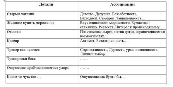 Пример: «Я стою возле старого магазина, собираюсь купить мороженое. Заглядываю в окошко, и вижу, что кассир — моя тренер по боксу. Она резко замахивается на меня. Я чувствую, что…»