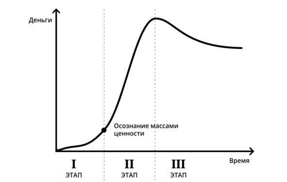 Предлагаем посмотреть своевременность компании и продукта по графику. Этот график преподают на MBA, и в нем более трех этапов. Но нам сейчас интересны первые три. Первый этап – развитие. Второй – стадия роста. Третий – стабилизация.