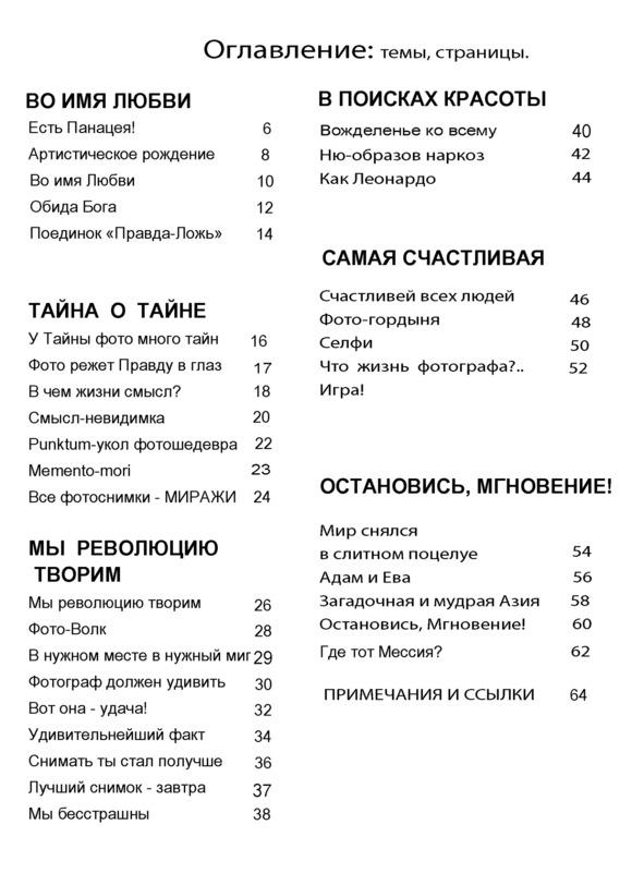 33 фото-поэтических произведений «SOS» раскрывают «Тайну о Тайне» фотографии. Соавторами идей «фото-стихов» выступают выдающиеся классики и деятели фотоискусства. Жанры произведений определила литературная часть: от причты — до басни, от сентенции — до буффонады, — на любой вкус.
