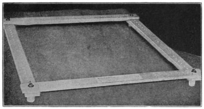 The design on the frame was painted in wax and the colors in the design reproduced from the colors in the silk. Most of the wax was removed with a knife and the balance with a gasoline wash. It was afterwards finished with a coating of wax.
