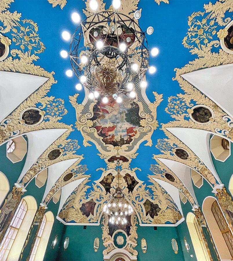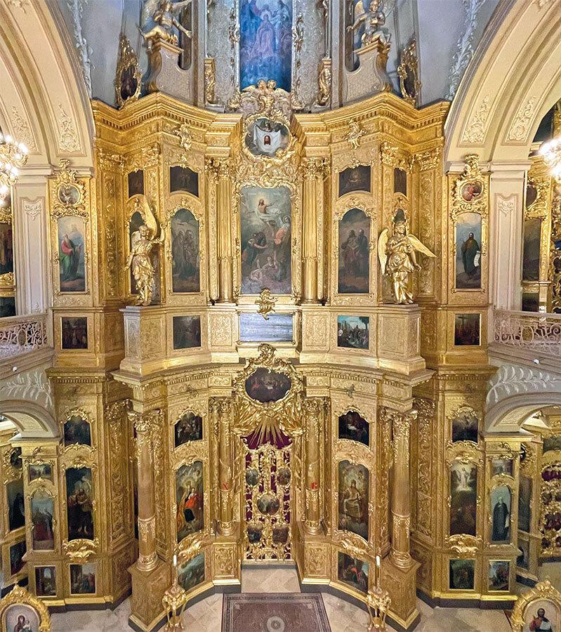 Для храма Троицы Ушаков и команда создают иконы местного ряда иконостасов, среди которых особенно выделялась та, что неофициально называется «Древо Государства Российского». В центре – образ Богоматери Владимирской, окружённый рамой из древесной кроны. Ствол же тянется из-за Кремлёвской стены, за которой стоят царь Алексей Михайлович, его супруга Мария Милославская и их сыновья Алексей и Фёдор. На иконе смелый Ушаков даже оставил свою подпись. За детальным изучением этой уникальной иконы стоит идти в Третьяковку – оригинал сегодня хранится там, а в храме находится копия. Но вот чем не может похвастаться галерея, так это роскошным каменным резным порталом, невероятным иконостасом и настенной живописью. Это всё дело рук той же кремлёвской артели.