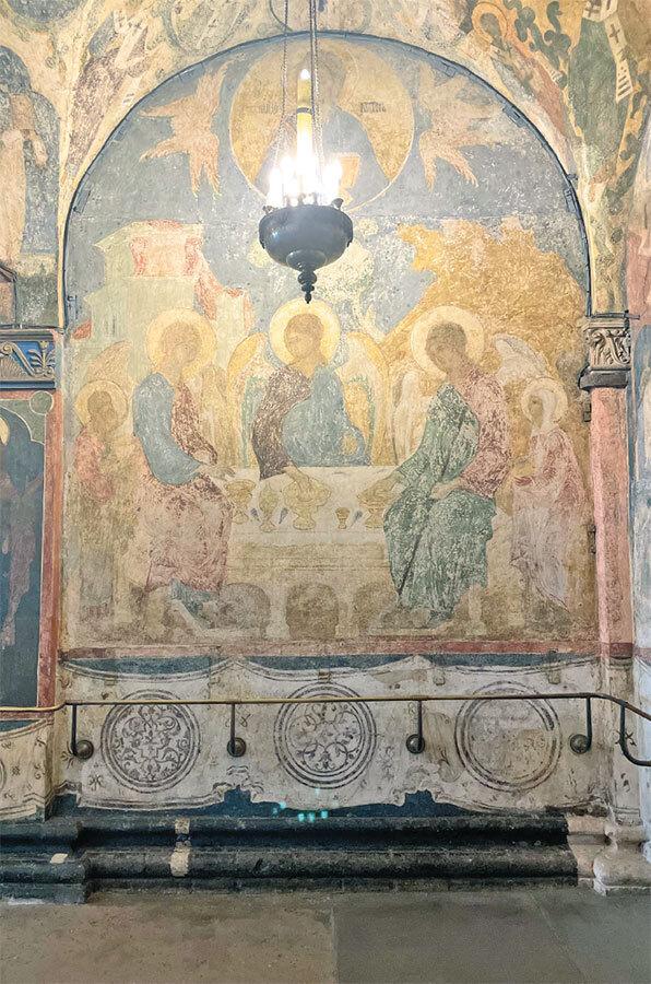 Андрею Рублёву досталось непростое время. Посмотрите одноимённый фильм другого Андрея, Тарковского, и всё станет понятно. Жестокость, эпидемии, войны. Неудивительно, что окружённый тяготами жизни человек начинает тянуться к чему-то светлому. Как раз светом, теплом, любовью и пропитаны работы Рублёва. Разумеется, всё это иконы. Другой живописи в тот период у нас просто не существовало. И конечно, все рублёвские работы сегодня – музейные сокровища. Хотя с недавних пор самая знаменитая живопись иконописца, «Троица», находится в храме Троице-Сергиевой лавры, для которого когда-то и была написана. Да и Успенский собор во Владимире гордится сохранившимися росписями именитого автора. А что же в Москве? Получается, Рублёв только в Третьяковке? Вот и нет.