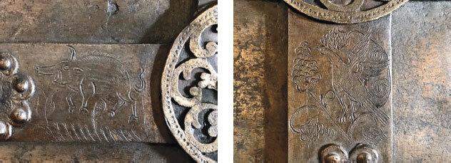 Вместе с лучшими мастерами церкви Троицы в Никитниках достаются и царские подарки. Набожный Алексей Михайлович жертвует храму два роскошных, многоярусных паникадила с государственной символикой в виде двуглавых орлов (одно из них до сих пор висит под куполом). А ещё искусно, да что там, почти ювелирно выполненные металлические двери. На них мастерами Оружейной палаты выгравированы христианские символы вперемешку с персонажами из славянского эпоса: фантастическими птицами, вепрями, русалками. Ну и в довесок храму от царя достаётся затейливая решётка-ограда, закрывающая дверь с внешней стороны. Из-за поздней пристройки эта решётка из уличной превратилась в интерьерную. Ничего подобного в московских посадских церквях не сохранилось.
