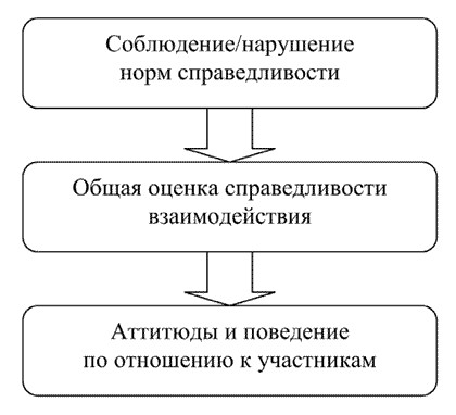 Сторонники второй – противоположной – позиции полагают, что оценка текущего взаимодействия полностью определяется сформированными ранее ожиданиями. Их источник специально не оговаривается. Однако логика рассуждений позволяет предположить, что они являются результатом определенной обработки информации о прошлом общении, касающейся соблюдения или нарушения норм справедливости.