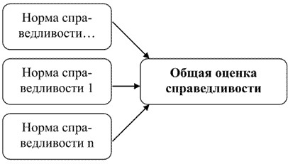 Таким образом, вступая в текущее взаимодействие, человек использует при его восприятии и оценке готовые схемы, игнорируя информацию о текущем положении дел. Другими словами, в основе оценки справедливости лежит прошлый опыт и психологическое состояние людей, а не характеристики текущей ситуации. Руководствуясь общей оценкой, человек выносит суждение о соблюдении отдельных норм справедливости (рисунок 6).