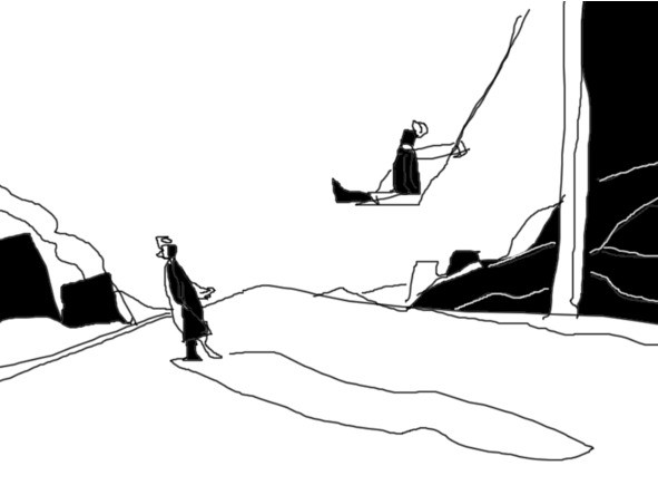 Изба в леске на вершине холма, под ним крутой склон и равнина. Могилка мужа рядом, на полянке. Кругом на десятки километров никого. Но она не одна. С ней корова, куры, кролики. Летом только поворачиваться успевай, готовь им запасы на зиму. Летом она мечтает о сыне: стал бы помощником. Зимой о дочери. Дочь пела бы ей перед сном. На улице мороз, темень, а у них дома уют, огонь в печи, дочь поет.