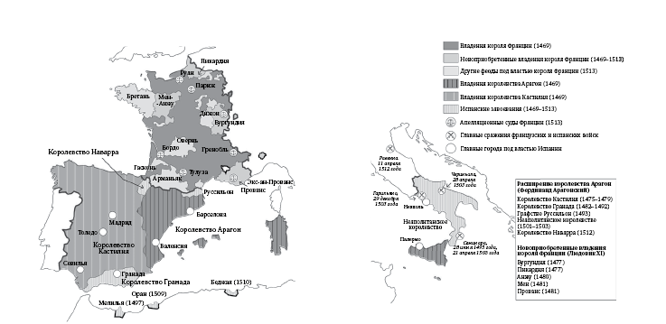 Рис. 1.2. Образование французской и испанской монархий (1469–1513)