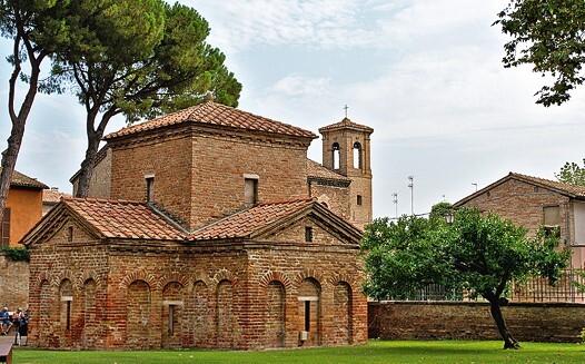 Существовал и другой, центрический тип храмов – круглый, многоугольный или крестообразный в плане (Мавзолей Галлы Плацидии в Равенне или Сан-Лоренцо-Маджоре в Милане (IV в.)).