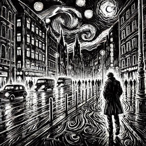 Берлин дышал ночной тоской. В его улицах таилась память, вплетённая в трещины брусчатки, отражённая в мутных лужах, разбитая в неоновых бликах на стекле. Город был живым и в то же время мёртвым: его прошлое напоминало о себе тяжестью каменных фасадов, его настоящее пульсировало светодиодами, а будущее — несуществующее, зыбкое — мерцало, как отражение луны в воде.