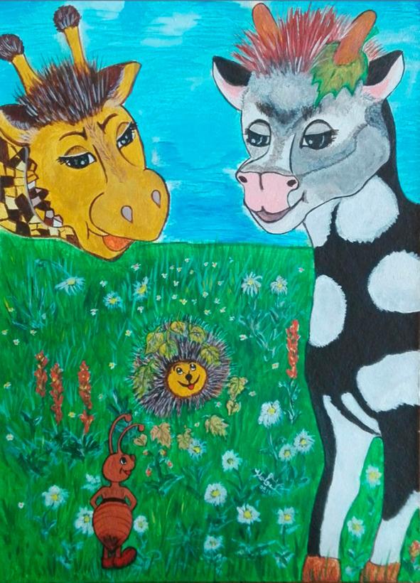 Весёлая компания, с которой познакомился Гоша, состояла из сома Уса Бурлилкина, муравья Мурашки, ёжика Иголкина, бычка Быки и теперь вот его самого — жирафика Гоши.