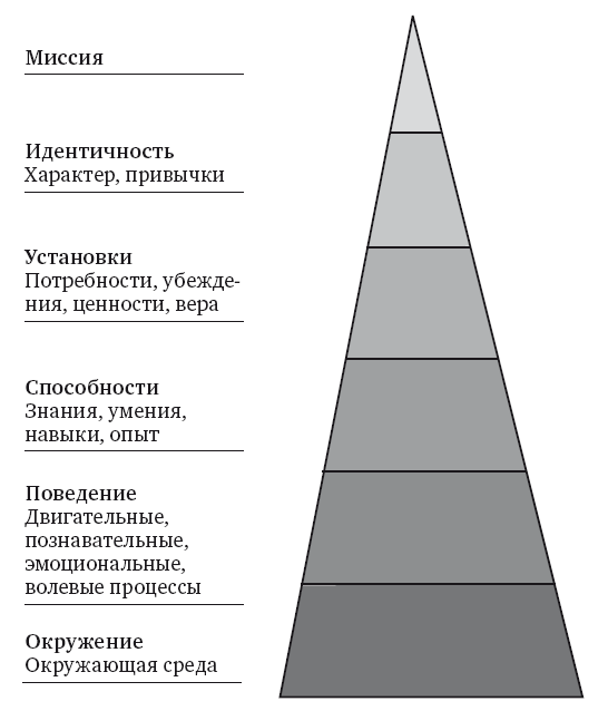 5. Лучшим источником информации о поведении человека является сам человек. Первый пункт гласит, что «любая активность человека – это проекция его личности». То есть для того, чтобы изучить поведение человека, необходимо знать структуру его личности. Для этого я воспользовался пирамидой Роберта Б. Дилтса.