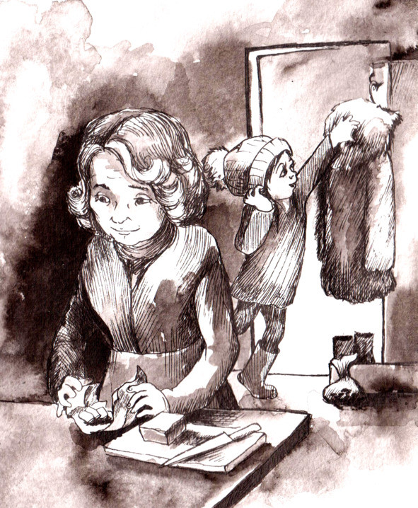 Девчушка быстро обула валенки, надела шубку, шапку, взяла из мешочка горсть семечек и побежала на улицу.