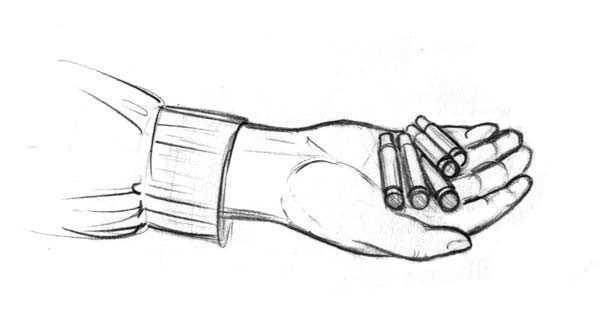 Улучив момент, он пробрался в большую комнату и взял гильзу. Когда он принёс её к себе, стало ясно, что взять её с собой незаметно не получится. Слишком большая. Что же делать?