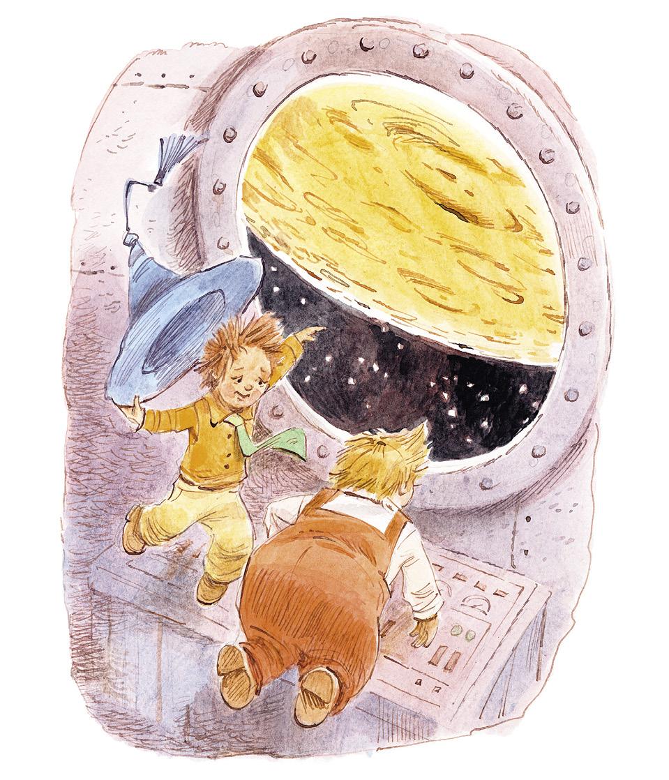 – Остерегись, говорят тебе! – сердито закричал Знайка. – Сейчас надо действовать со всей осторожностью. Ведь мы находимся в состоянии невесомости. Неизвестно, куда тебя понесёт, как только ты очутишься под открытым небом. Малейший толчок – и полетишь прямо в мировое пространство.