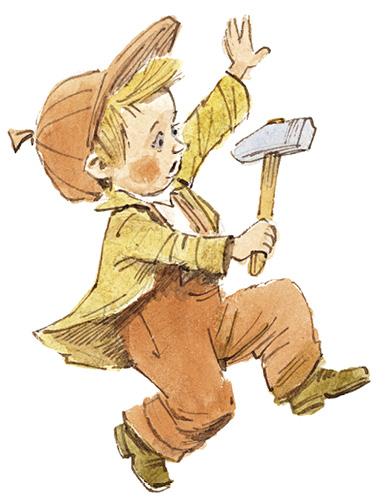 – Смотри, как замечательно получилось, – сказал Шпунтик, садясь на стул. – Разве я мог бы сидеть на стуле, если бы ботинки не были приколочены? Я смог бы сидеть только в том случае, если бы держался за стул руками, но тогда бы я не смог ничего делать. Теперь же у меня руки свободны, и я могу делать всё, что угодно. Могу и писать, и читать, сидя за столом, а если сидеть надоест, могу встать и работать стоя.