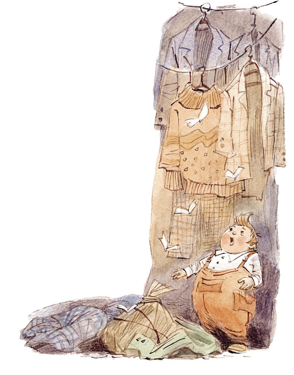 Все были очень довольны. Единственным, кто пострадал на этом деле, оказался Пончик. Когда Пончик увидел, что теперь можно брать в магазине любую вещь, какая только могла понадобиться, он стал недоумевать, к чему ему вся та куча костюмов, которая накопилась у него дома. Все эти костюмы к тому же вышли из моды, и их всё равно нельзя было носить. Выбрав потемней ночку, Пончик завязал свои старые костюмы в огромный узел, вынес тайком из дома и утопил в Огурцовой реке, а вместо них натаскал себе из магазинов новых костюмов. Кончилось тем, что его комната превратилась в какой-то склад готового платья. Костюмы лежали у него и в шкафу, и на шкафу, и на столе, и под столом, и на книжных полках, висели на стенах, на спинках стульев и даже под потолком, на верёвочках.
