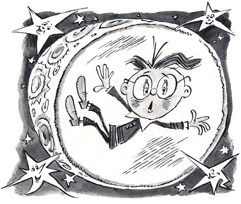 – Про Луну?.. Про состояние невесомости? – растерянно повторял Знайка. – Ну ладно, пусть будет про состояние невесомости. Вы, наверно, знаете, что космическая ракета, для того чтобы преодолеть притяжение Земли, должна приобрести очень большую скорость – одиннадцать километров в секунду. Пока ракета набирает эту скорость, ваше тело испытывает большие перегрузки. Вес вашего тела как бы увеличивается в несколько раз, и вас с силой прижимает к полу кабины. Вы не можете поднять руку, вы не можете поднять ногу, вам кажется, что всё ваше тело как бы налилось свинцом. Вам кажется, будто какая-то страшная тяжесть навалилась на вашу грудь и не даёт вам дышать. Но как только разгон космического корабля прекращается и он начинает свой свободный полёт в межпланетном пространстве, перегрузки кончаются, и вы перестаёте испытывать силу тяжести, то есть, попросту говоря, теряете вес.