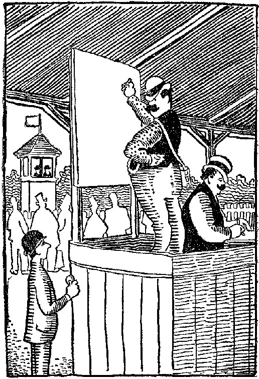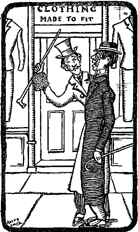 Now, Brad was done up but unconvinced. He could not stand up before the District School and tell why it was good policy to corral the Coin, but he had a secret Hunch that it would be no Disgrace for him to go out and do the best he could. Brad had a bull-dog Jaw and large blood-shot Hands and a Neck-Band somewhat larger than his Hat-Band. He jumped the Stockade when they started to teach him Botany. He weighed 180 and he thought he was too large to sit around and count the Petals of the Ox-Eye Daisy when he might be out selling Lightning Rods to the Yaps and making jug-handled Contracts. Accordingly he Dug.