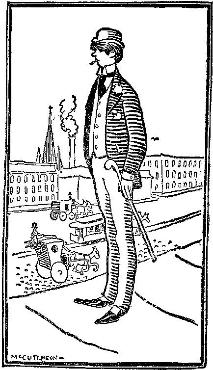 "This is a likely-looking Plant," said Brad, as he sized up the Campus. "I like to encourage these Joints because they help to keep a lot of Young Fellows away from Business Offices. I find that I have here in my Vest-Pocket a measly $50,000 that I have overlooked in changing my Clothes. Give it to the Main Cheese and tell him to have a Laboratory on me."