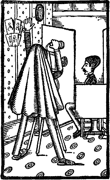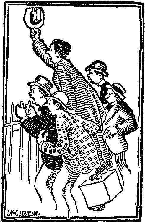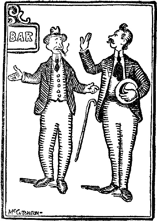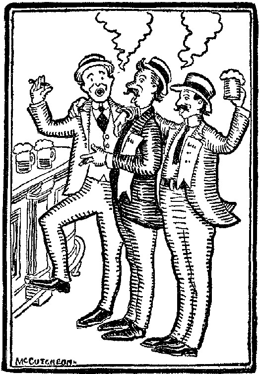 As Narrated at the Beginning, for three weeks he worked hard at the Job of being an Abstainer. And at last he accumulated a Sense of Virtue that weighed over 200 Pounds. He knew that he was entitled to a Reward, so he decided to buy himself a little Present. Just a wee Reminder of by-gone Days and then back to Sarsaparilla. But he fell into a Crowd. There was another State Convention. It had been arranged for him so that he could get a Fresh Start.
