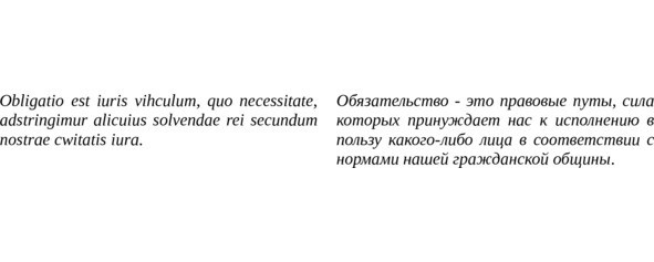«Обязательством называется субъективная юридическая ситуация, основанная на личной связи между конкретными участниками гражданского оборота (сторонами), которая состоит в формальной возможности для одного из них (кредитора) требовать от другого (должника) определенного поведения (предоставления) в свою пользу. Притязанию кредитора соответствует обязанность должника, которая представляет собой, однако, подчинение не кредитору как отдельному лицу, а праву в целом как общепризнанной системе норм поведения. Воля должника, связанная обязанностью подчиниться кредитору, свободна в том смысле, что признанием пользуется только нормативное притязание кредитора и от должника в принципе нельзя потребовать большего, чем соответствия общему стандарту поведения, установленному для случаев данного типа.