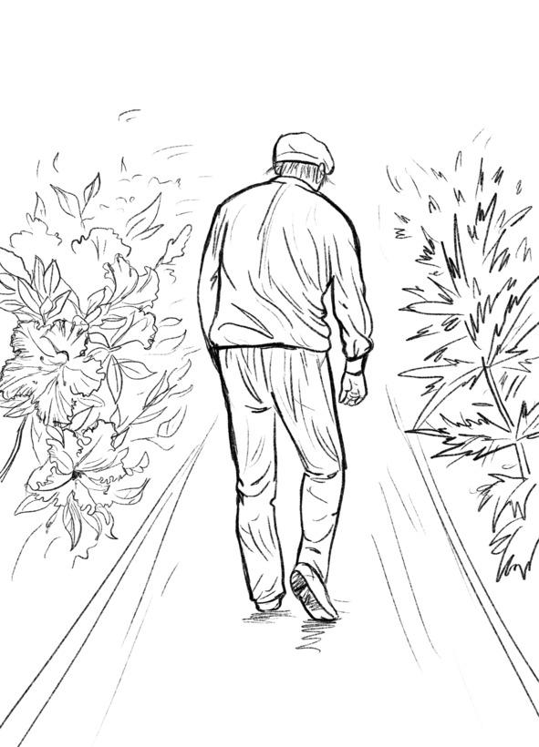 «Будто у виска крутит, будто кричит что-то», — подумал старик и отвернулся. А там — голое дерево, без веток, без листьев, в мучительной позе вопросительного знака. И из земли — изогнутый лист в форме вот-вот-прямо-сейчас-укушу кобры. И рядом с ядовитой её головой — доверчивый увядающий серый цветок, худенький такой, бледненький такой.