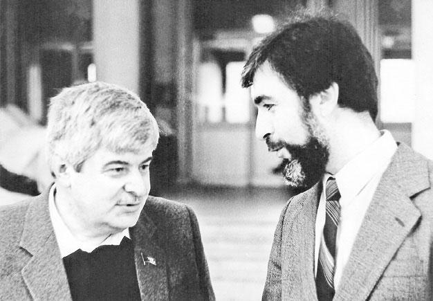 «Нестором», летописцем происходившего, был Виктор Шейнис, привычка которого заносить в клеенчатую общую тетрадь стенограмму наших совещаний вызывала частые шутки: мол, надо подкладывать копирку, чтобы легче было информировать КГБ о принятых решениях27. Вот и шути — при подготовке этой книги я нередко обращался к фундаментальному двухтомнику Виктора Шейниса «Взлет и падение парламента».