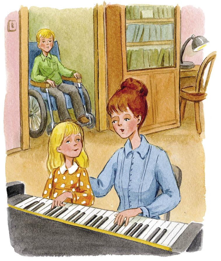 Она села рядом с девочкой. Олауг стала играть одним пальцем в высоких регистрах, а Эва играла на басах. Получилось очень красиво, мелодии объединились, и вышла та самая песенка.