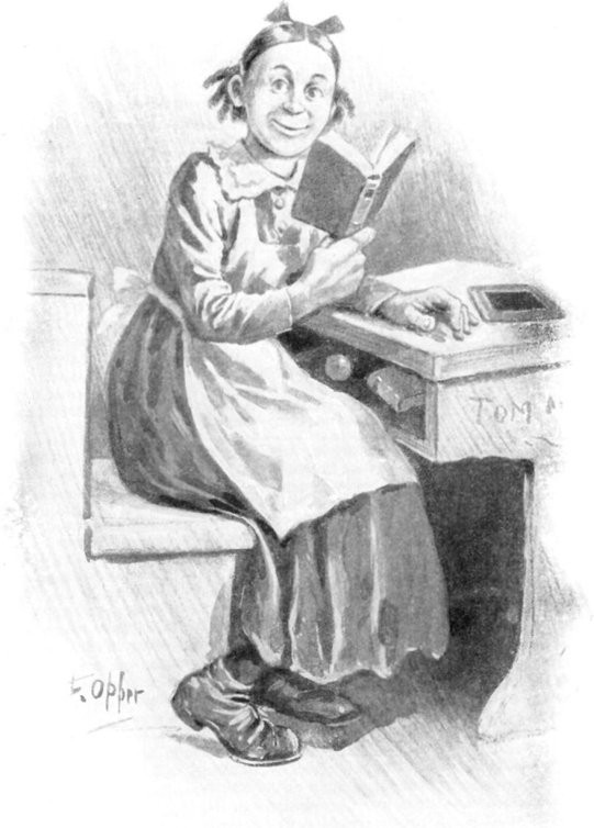"Jeems Phillips," name and all, is a real person whom at the time of writing this story I had not seen since I was a lad of nine and he a man of nearly forty. He was a mere memory to me, and was put into the book with some slighting remarks which the real Jeems did not deserve. I did not know that he was living, and it did not seem likely that the story would have vitality enough to travel all the way to Indiana. But the portion referring to Phillips was transferred to the county paper circulating among Jeems' neighbors. For once the good-natured man was, as they say in Hoosier, "mad," and he threatened to thrash the editor. "Do you think he means you?" demanded the editor. "To be sure he does," said the champion speller. "Can you spell?" "I can spell down any master that ever came to our district," he replied. As time passed on, Phillips found himself a lion. Strangers desired an introduction to him as a notability, and invited the champion to dissipate with them at the soda fountain in the village drug store. It became a matter of pride with him that he was the most famous speller in the world. Two years ago, while visiting the town of my nativity, I met upon the street the aged Jeems Phillips, whom I had not seen for more than forty years. I would go far to hear him "spell down" a complacent school-master once more.