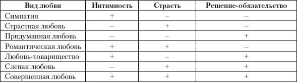 Ю. Щербатых (2002) предложил студентам из медицинской академии дать свое определение любви. Ответы были самые разнообразные: «потребность в другом человеке» и «наслаждение», «душевный комфорт» и «чувство восторга», «смысл жизни» и «безумие», «понимание другого человека» и «потеря власти над собой», «отсутствие эгоизма» и «эгоизм», «наслаждение» и даже «привычка» – в общем, каждый понимал любовь по-своему. Б. Марстейн (Murstein, 1988) пишет в связи с этим, что любовь представляет некую Австро-Венгерскую империю, где под одной шапкой собрано множество достаточно трудносовместимых когнитивных, эмоциональных и поведенческих явлений. Понятие «любовь» как собирательное для множества разных явлений во взаимоотношениях людей рассматривает и Келли (Kelley, 1983).