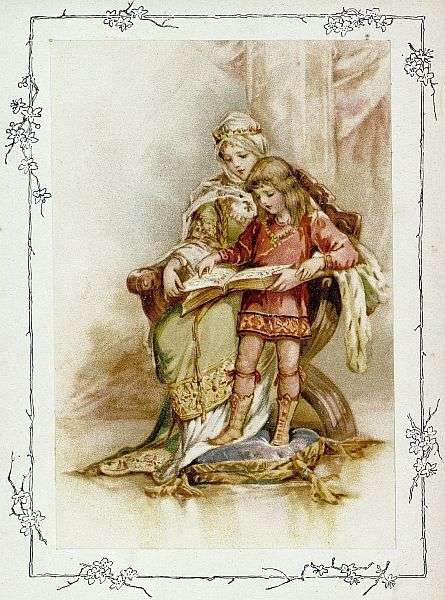 Like most great men, this King Alfred had a good mother. She used to read to him, when he was little, out of a great book with gold and precious stones on the cover, and inside beautiful songs and poetry. And one day she said to the young princes, who were all very fond of being read to out of this splendid book—
