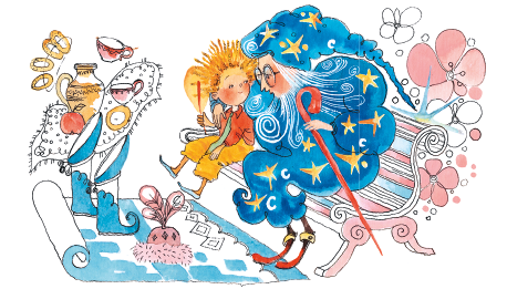 – Совсем не смеюсь. Ты совершил три хороших поступка и можешь просить у меня что угодно… Ну, что тебе больше нравится: шапка-невидимка или сапоги-скороходы? Или, может быть, ты хочешь ковёр-самолёт?