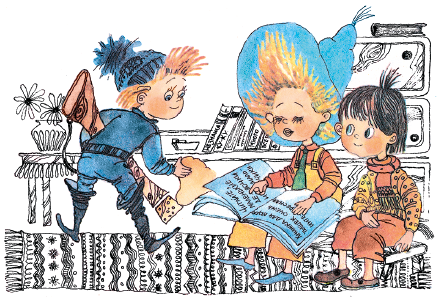 – Ну ладно, слушай, – согласился Незнайка и стал читать книжку вслух.