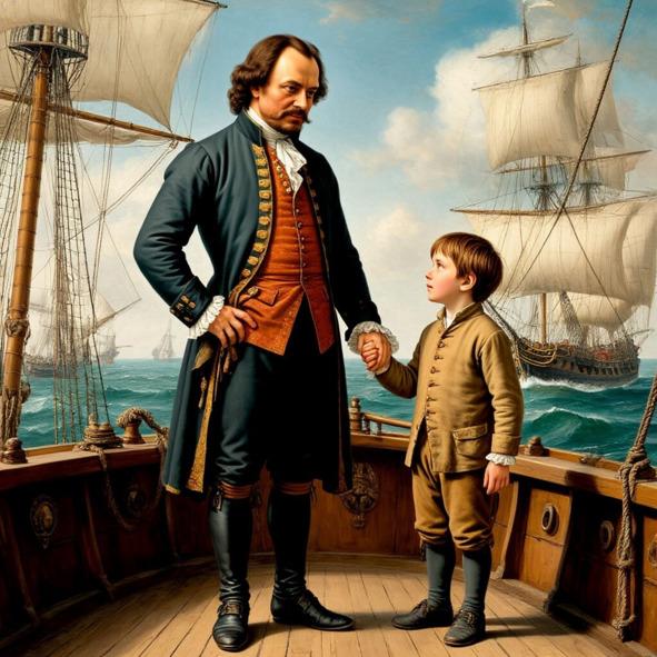 Давным-давно, когда Россия, словно молодой орёл, расправляла крылья над Балтикой, а ботик Петра Великого — Дедушка Русского Флота — ещё не стал музейной святыней, а бороздил студёные волны, жил на берегах Невы мальчишка-ветерок по имени Ванька. Сирота, босоногий да голодный, он скитался по берегам Невы, ловил рыбу и мечтал о море. Но не просто мечтал — однажды, когда царский флот готовился к походу, девятилетний Ванька пробрался на корабль, спрятавшись в бочке с солониной. Так началась история самого маленького юнги Петра Великого — мальчишки, который доказал, что отважное сердце важнее роста и лет.