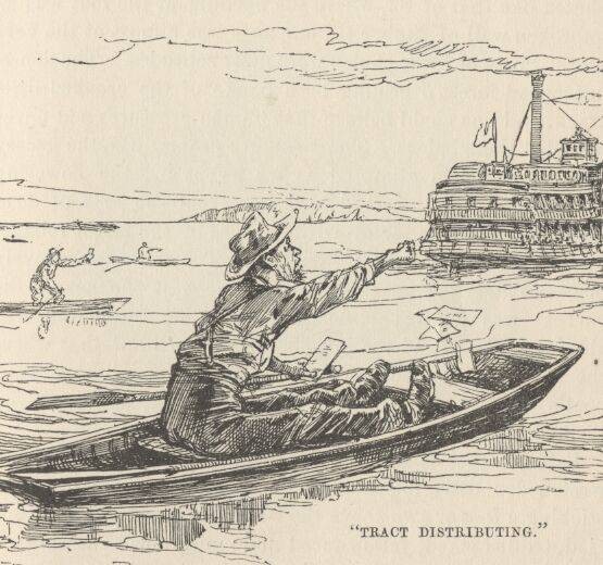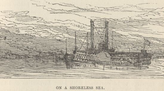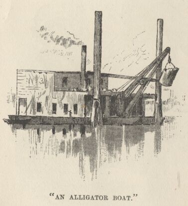 Once, when an odd-looking craft, with a vast coal-scuttle slanting aloft on the end of a beam, was steaming by in the distance, he indifferently drew attention to it, as one might to an object grown wearisome through familiarity, and observed that it was an 'alligator boat.'