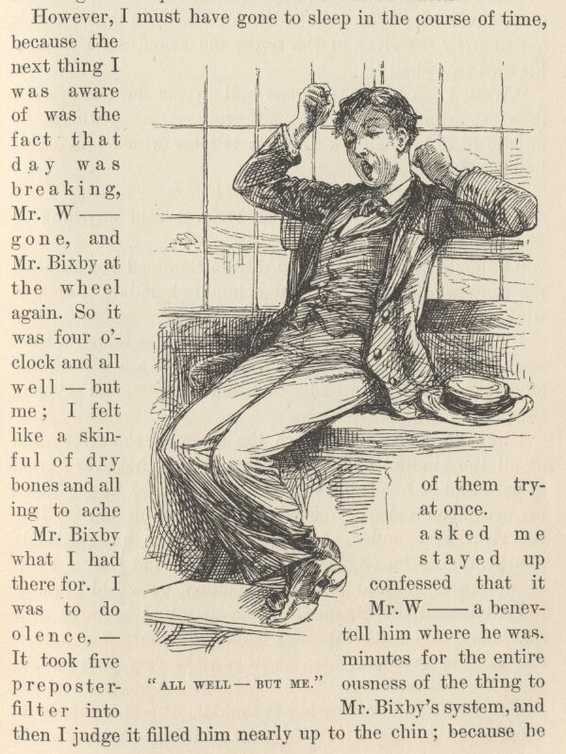 When I went up to my room, I found there the young man called Rogers, crying. Rogers was not his name; neither was Jones, Brown, Dexter, Ferguson, Bascom, nor Thompson; but he answered to either of these that a body found handy in an emergency; or to any other name, in fact, if he perceived that you meant him. He said—