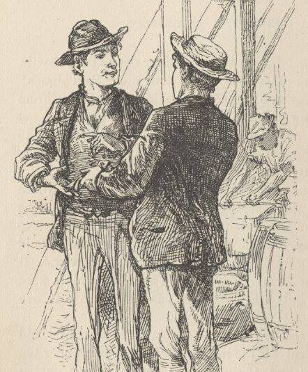 'Here!' (calling me by name), 'YOU take her and lie a while—you're handier at it than I am. Trying to play yourself for a stranger and an innocent!—why, I knew you before you had spoken seven words; and I made up my mind to find out what was your little game. It was to DRAW ME OUT. Well, I let you, didn't I? Now take the wheel and finish the watch; and next time play fair, and you won't have to work your passage.'