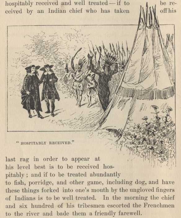 But the mystery was explained when we got under way again; for these people were evidently bound for a large town which lay shut in behind a tow-head (i.e., new island) a couple of miles below this landing. I couldn't remember that town; I couldn't place it, couldn't call its name. So I lost part of my temper. I suspected that it might be St. Genevieve—and so it proved to be. Observe what this eccentric river had been about: it had built up this huge useless tow-head directly in front of this town, cut off its river communications, fenced it away completely, and made a 'country' town of it. It is a fine old place, too, and deserved a better fate. It was settled by the French, and is a relic of a time when one could travel from the mouths of the Mississippi to Quebec and be on French territory and under French rule all the way.