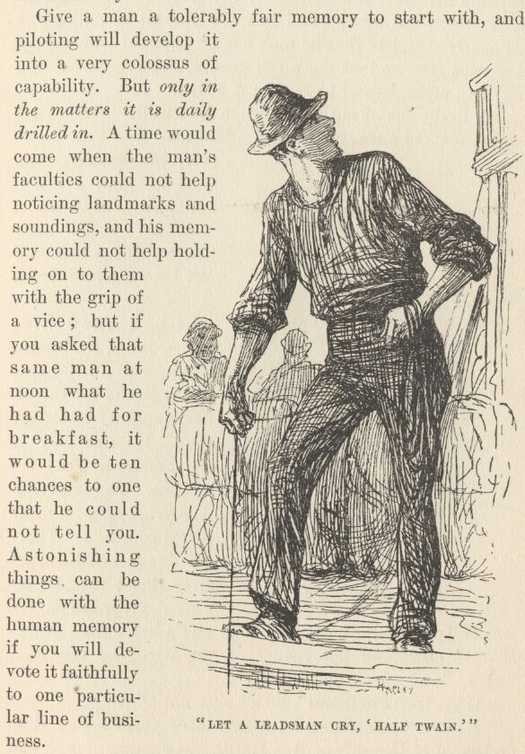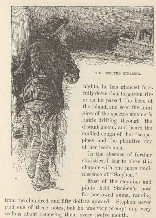 'Do you see that little boulder sticking out of the water yonder? well, when I first came on the river, that was a solid ridge of rock, over sixty feet high and two miles long. All washed away but that.' [This with a sigh.]