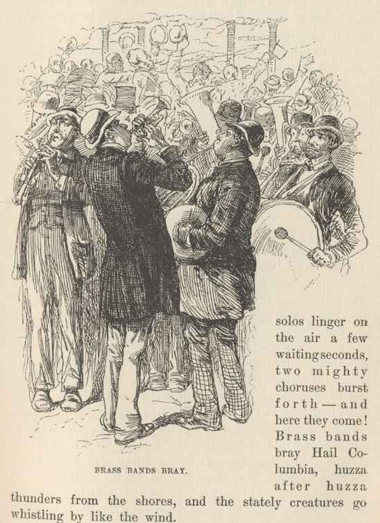 Uniforms on the Mississippi! It beats all the other changes put together, for surprise. Still, there is another surprise—that it was not made fifty years ago. It is so manifestly sensible, that it might have been thought of earlier, one would suppose. During fifty years, out there, the innocent passenger in need of help and information, has been mistaking the mate for the cook, and the captain for the barber—and being roughly entertained for it, too. But his troubles are ended now. And the greatly improved aspect of the boat's staff is another advantage achieved by the dress-reform period.