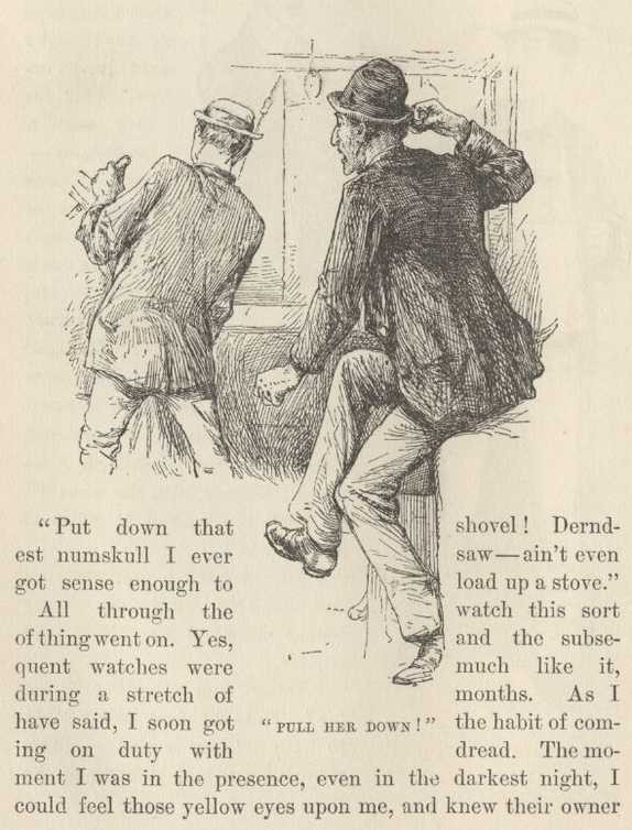 'This,' putting his hand on a backing-bell rope, 'is to sound the fire-alarm; this,' putting his hand on a go-ahead bell, 'is to call the texas-tender; this one,' indicating the whistle-lever, 'is to call the captain'—and so he went on, touching one object after another, and reeling off his tranquil spool of lies.