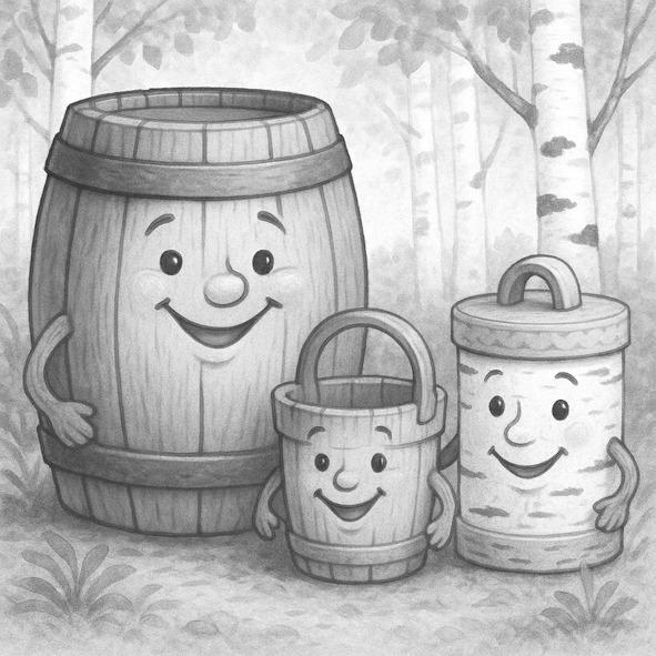Разговоры порою смолкали, селилась тишина в помещении, только ветер посвистывал, да вольно пробегал по двору, потом и он удалялся в луга за деревню. Наступал вечер, в сарае становилось темно, но можно услышать, как тишина прерывалась негромким разговором бочонка с кадушкой, а потом в разговор вступал старенький туес, словно бы невпопад, а на деле, он жизнь рассказывал, он повествовал истории о лесе, где пели птицы и шептали берёзы, сказывал о молодых ивушках и закатах, который разливался в водах бегущей речушки. О многом поведал старый берёзовый туес, а потом засыпал… Бочонок и кадочка старались не шуметь и, как могли, оберегали его сон.