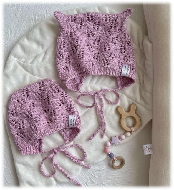 — Завязки чепчика вяжутся шнуром i-cord или платочной вязкой.