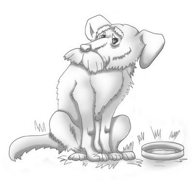 І ще один персонаж підкорив молодого творця своїм характером. Мілош сміявся до сліз, коли читав історію Сірко. Про те, як вовк допоміг старому псу повернути довіру господарів. Тому в окремій папці для ілюстрацій до українського фольклору з’явився малюнок сумного Сірко, який схилився над порожньою мискою біля собачої конури.