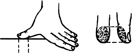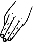Массаж проводится с помощью трех пальцев: указательного, среднего и безымянного (по 20–25 движений на каждую точку). На рис. 2 показано, как нужно действовать этими пальцами. Можно использовать также один большой палец. На рис. 3 показано, как это делается.