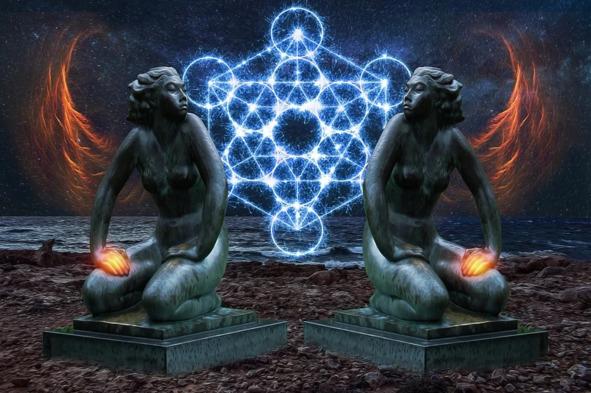 Об исходном приеме мы уже говорили в прошлой рассылке — это «снятие второй оболочки», отказ от деления мира на «МОЁ» и «ЧУЖОЕ». Когда мир становится ИНЫМ, ИНЫМИ становимся, и мы сами, а это почти освобождает нас от деления на «мечтателей» и «материалистов». Пустотные образы мира и заполняющие его объекты существуют вовне и уже не растягивают нас на две почти противоположные части. Тогда они могут соединиться в единое целое, открывающее врата ПЕРЕХОДА.