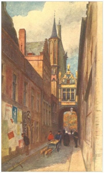 Rue de l'Âne Aveugle (showing end of Town Hall and Bridge connecting it with Palais de Justice), Bruges 146.