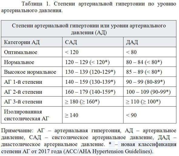 Гипертонию принято разделять на несколько групп по уровню артериального давления (Табл. 1).